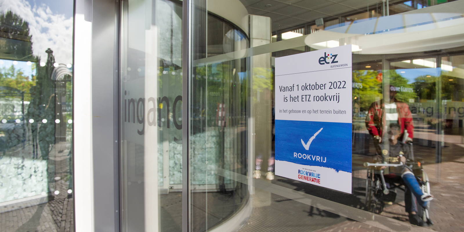 Een rookvrij terrein houdt in dat op ons hele terrein, van alle ETZ locaties, niet meer gerookt wordt. Dus ook niet op de stoep of voor de ingangen van het gebouw. Iedereen moet onze gebouwen rookvrij kunnen betreden. De nog aanwezige rokersabri’s en andere rookplekken worden weggehaald.